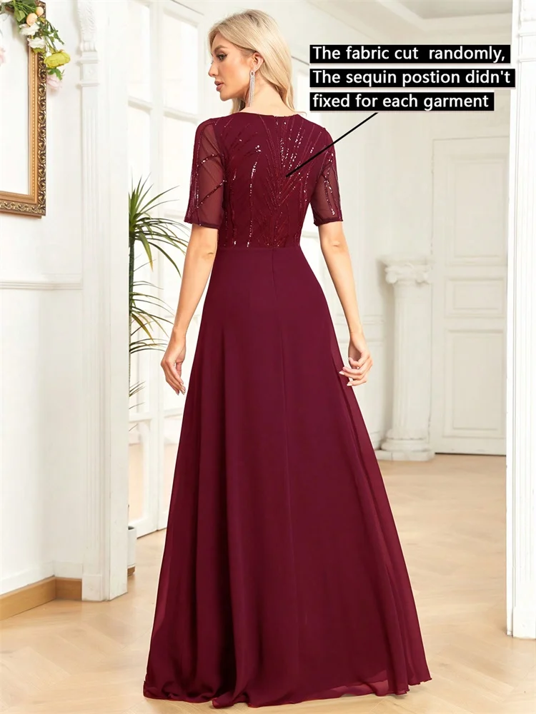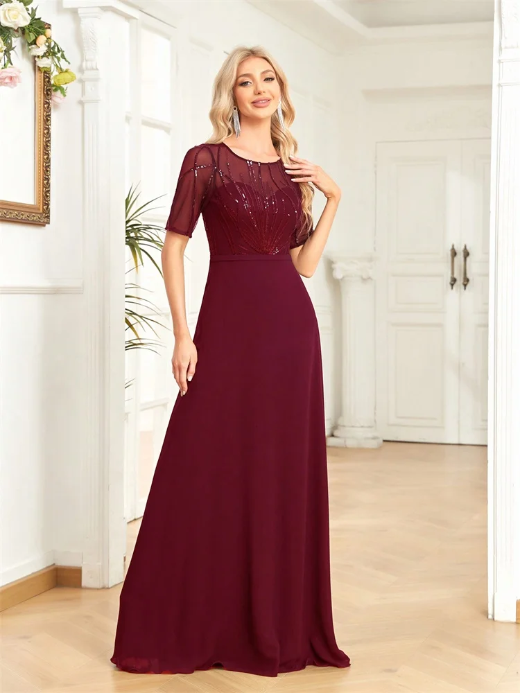 Elegant Short Sleeves Sequins Formal Evening Dresses Women Chiffon Mermaid Bridesmaid Party Maxi Prom Cocktail Gowns